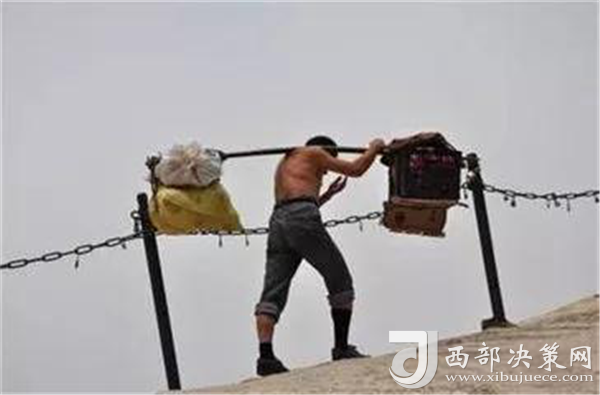 一位挑山工說(shuō):挑夫這個(gè)苦力活,已經(jīng)沒(méi)有年輕人來(lái)做。如今35歲以下的年輕人,對(duì)這個(gè)活瞧不上眼,寧可閑著,也不做挑夫。但是,華山景區(qū)的正常運(yùn)營(yíng)及后期建設(shè),必須依賴于挑夫。這活兒,總得有人做。