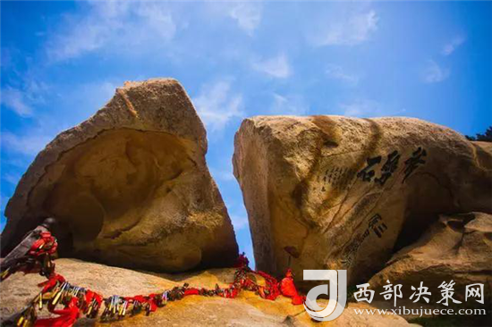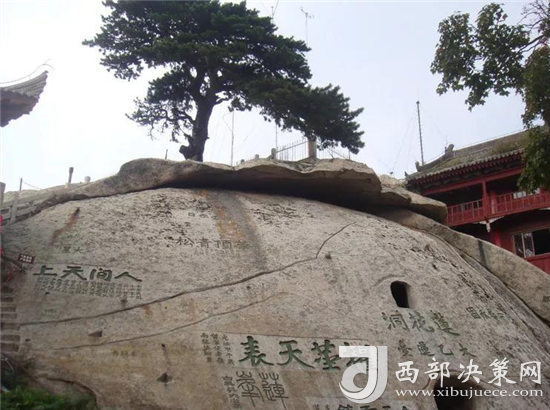 西峰上景觀比比皆是,有翠云宮、蓮花洞、巨靈足、斧劈石、舍身崖等,并伴有許多美麗的神話傳說(shuō)。峰上崖壁題刻遍布,工草隸篆,琳瑯滿目。峰北絕頂叫西石樓峰,峰上楊公塔為楊虎城將軍所建,塔上有楊虎城將軍親筆題辭。塔下巖石上有"枕破鴻蒙"題刻,是書(shū)法家王鐸手跡。