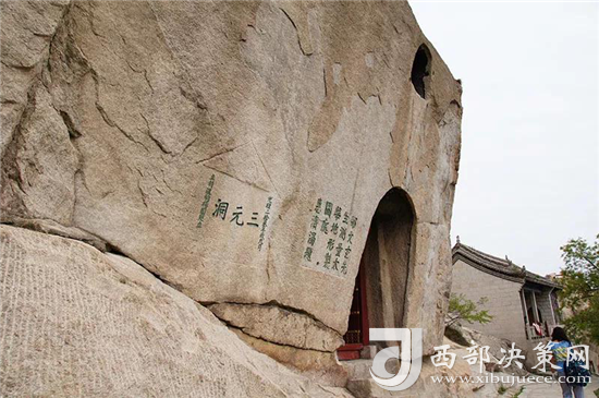登西峰極目遠(yuǎn)眺,四周群山起伏,云霞四披,周野屏開(kāi),黃渭曲流,置身其中若入仙鄉(xiāng)神府,萬(wàn)種俗念,一掃而空。宋名隱士陳摶在他的《西峰》詩(shī)中就有"寄言嘉遁客,此處是仙鄉(xiāng)"的名句。