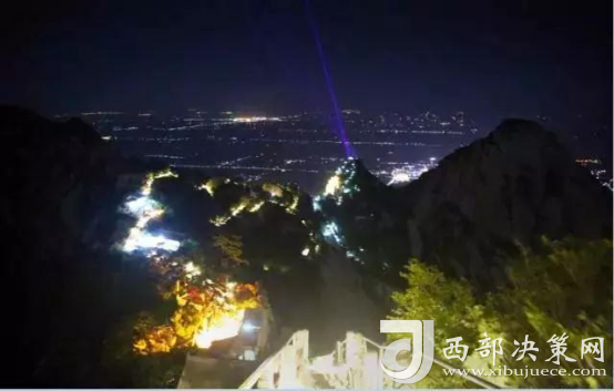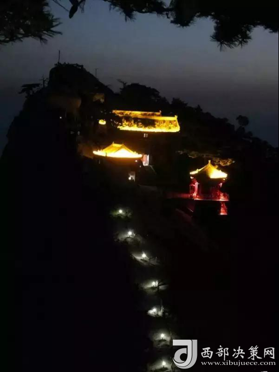 繁眼的星光,滿山的燈光,將華山映襯得一派柔和,這里的夜屏蔽了城市的喧囂與繁華,有著不屬于城市的寧?kù)o與美麗。