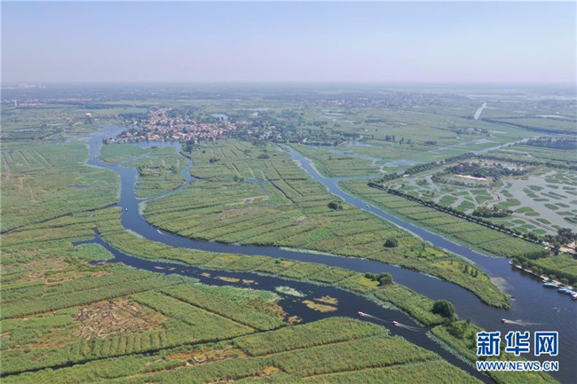 這是8月31日使用無人機(jī)拍攝的白洋淀內(nèi)村莊。新華社記者 牟宇 攝