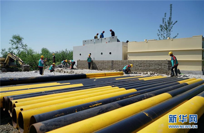 這是8月31日拍攝的白洋淀望月島污水凈化工程施工現(xiàn)場。新華社記者 牟宇 攝