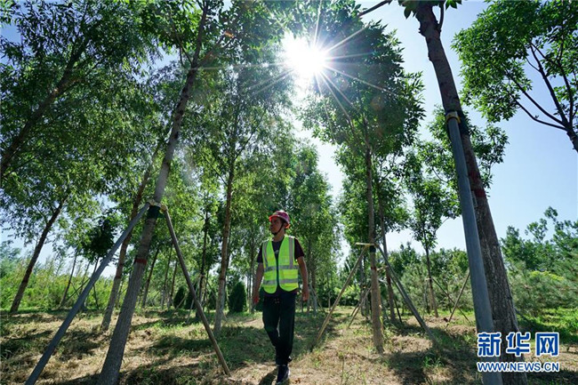 一名護(hù)林員在千年秀林內(nèi)巡視(8月29日攝)。新華社記者 牟宇 攝