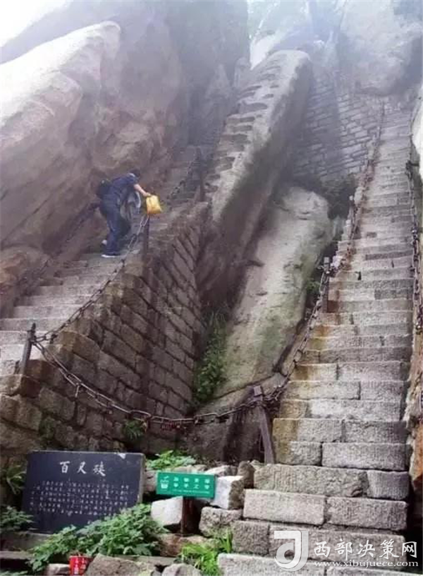 眾所周知,華山在五岳之中以“險(xiǎn)峻”著稱。素有“奇險(xiǎn)天下第一山”之譽(yù),華山的主體是由一塊完整碩大的花崗巖體構(gòu)成的,挺拔地屹立在渭河平原。東、南、西三峰拔地而起,如利刃削就。由于華山太險(xiǎn),所以唐代以前很少有人登臨,歷代君王祭祀西岳,也只是在山下西岳廟中舉行大典。據(jù)記載,直到魏晉南北朝時(shí)期,還沒(méi)有通向華山峰頂?shù)牡缆?。唐代才逐漸在北坡沿溪谷而上開(kāi)鑿了一條險(xiǎn)道,也從此有了“自古華山一條路”的說(shuō)法。