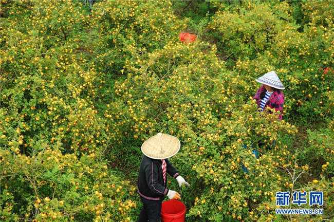貴州省龍里縣谷腳鎮(zhèn)的農(nóng)民在采摘刺梨鮮果(2018年8月22日攝)。 近年來,貴州省圍繞產(chǎn)業(yè)選擇、培訓(xùn)農(nóng)民、技術(shù)服務(wù)、資金籌措、組織方式、產(chǎn)銷對接、利益聯(lián)結(jié)、基層黨建等“八要素”,通過“減、融、服”創(chuàng)新推進農(nóng)村產(chǎn)業(yè)結(jié)構(gòu)調(diào)整,既帶動了農(nóng)戶增收,也推動了特色產(chǎn)業(yè)做大做強。 新華社記者 楊文斌 攝
