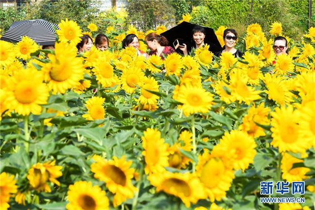 近日,位于長(zhǎng)沙市的湖南省森林植物園中的向日葵在秋陽(yáng)下競(jìng)相綻放,黃花綠葉交相輝映,吸引眾多市民、游客前來(lái)觀賞。