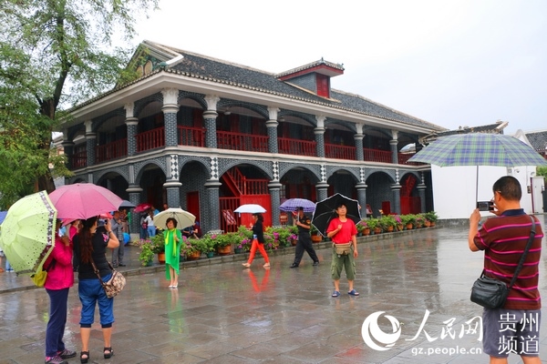游客在遵義會(huì)址前拍照留念。王欽 攝