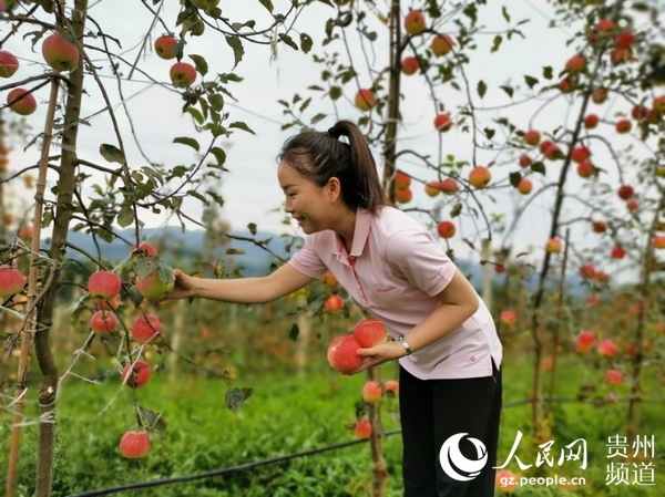 游客在桐梓縣官倉(cāng)鎮(zhèn)蘋果種植基地體驗(yàn)采摘樂(lè)趣。王欽 攝
