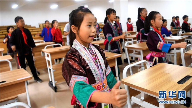 這是廣西三江侗族自治縣江川小學(xué)學(xué)生在學(xué)唱侗戲(10月14日攝)。 新華社記者張愛(ài)林?jǐn)z