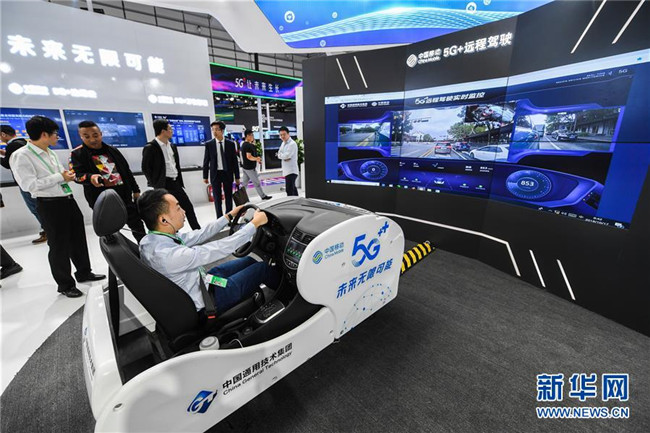 這是互聯(lián)網(wǎng)之光博覽會現(xiàn)場展示的基于5G技術(shù)的遠程駕駛系統(tǒng)(10月18日攝)。 新華社記者 徐昱 攝