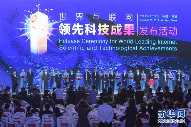 10月20日,15項世界互聯(lián)網(wǎng)領(lǐng)先科技成果在浙江烏鎮(zhèn)召開的第六屆世界互聯(lián)網(wǎng)大會上發(fā)布,這是出席發(fā)布活動的代表在臺上合影。 新華社記者 黃宗治 攝