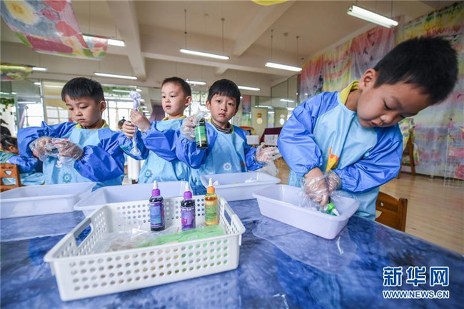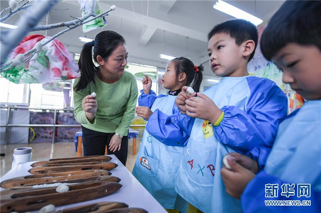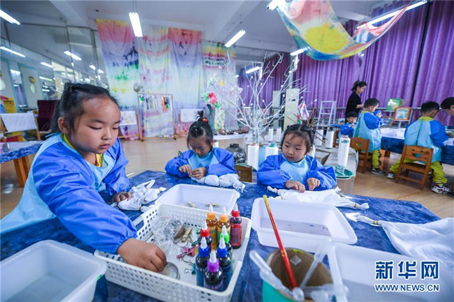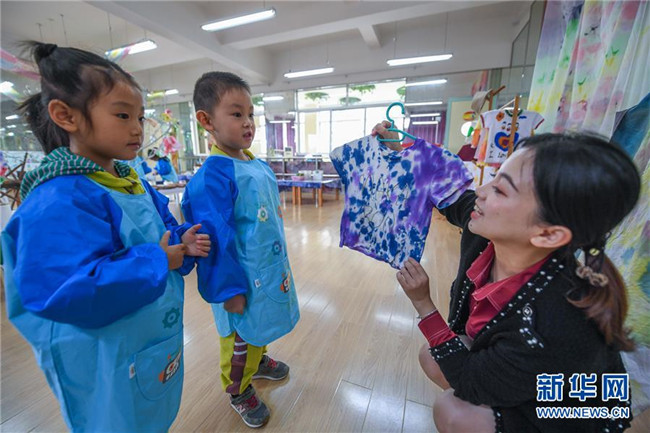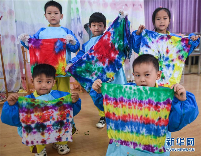 今年以來,浙江省長興縣夾浦鎮(zhèn)中心幼兒園依托當?shù)貍鹘y(tǒng)布藝文化基礎開設“七彩課堂”,引進布藝、扎染等傳統(tǒng)工藝課程,讓孩子們感受民間工藝的魅力。 新華社記者 徐昱 攝