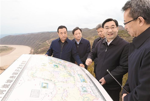 十月二十四日,省委書(shū)記胡和平來(lái)到位于宜川縣云巖鎮(zhèn)的黃河古賢水利樞紐工程現(xiàn)場(chǎng),聽(tīng)取項(xiàng)目規(guī)劃介紹。 本報(bào)記者 宋紅梅攝