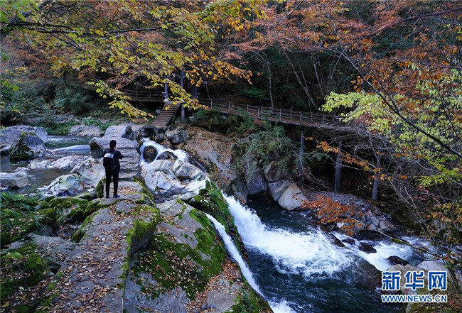 10月30日,游客在陜西嵐皋巴山珍稀植物園內(nèi)游玩。