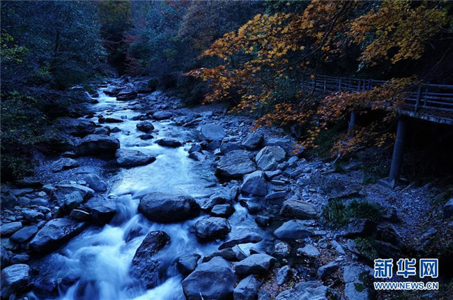 陜西嵐皋縣地處大巴山北麓,境內(nèi)山水相依,美景薈萃。時(shí)下,這里層林盡染,秋光瀲滟,云霧繚繞,宛如仙境。 新華社記者 邵瑞 攝