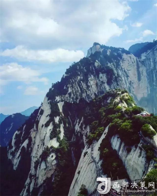 五岳中,西岳以險(xiǎn)著稱。華山于渭河平原上拔地而起,像一塊囫圇大石四面被刀削斧鑿一般,山勢(shì)雄偉,奇峰突起,前瀕黃河,后接秦嶺。