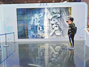在中國館,用超大裸眼3D技術(shù)播放的成都寬窄巷子視頻引人關(guān)注。 記者 肖雨楊 攝
