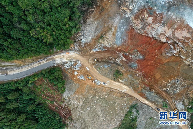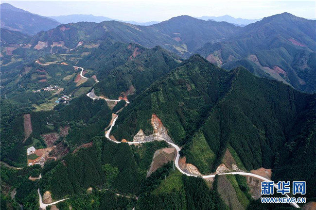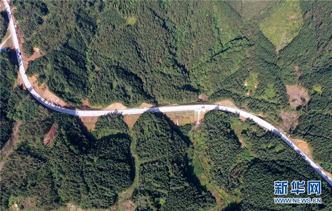 這是位于廣西融水苗族自治縣四榮鄉(xiāng)境內(nèi)在建的羅融二級(jí)公路(11月19日無(wú)人機(jī)拍攝)。 新華社記者 黃孝邦 攝