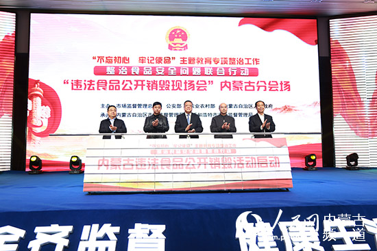 20日上午,由內(nèi)蒙古市場監(jiān)督管理局、呼和浩特市市場監(jiān)督管理局承辦的食品安全問題整治行動(dòng)違法物品銷毀活動(dòng)在呼和浩特市國際會展中心舉行。