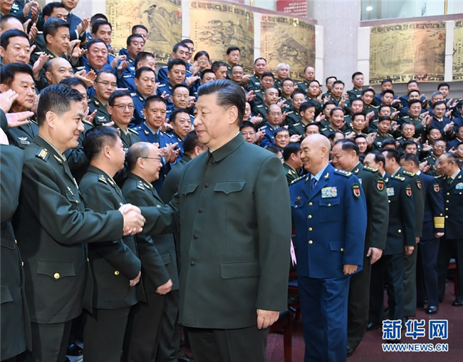 11月27日上午,全軍院校長(zhǎng)集訓(xùn)在國(guó)防大學(xué)開班。中共中央總書記、國(guó)家主席、中央軍委主席習(xí)近平出席開班式并發(fā)表重要講話,代表黨中央和中央軍委,向全軍院校長(zhǎng)和軍事教育戰(zhàn)線的同志們致以誠(chéng)摯問(wèn)候。這是習(xí)近平親切接見(jiàn)集訓(xùn)班全體學(xué)員。 新華社記者 李剛 攝