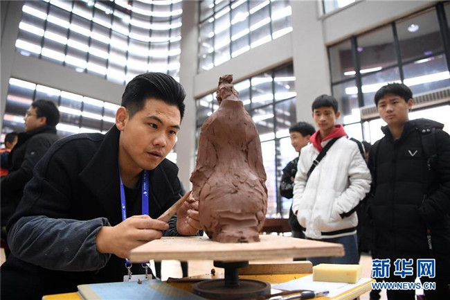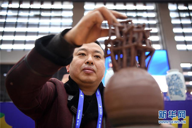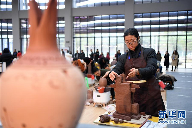 12月1日,參賽選手在陶藝技能大賽現(xiàn)場制陶。新華社記者唐奕攝