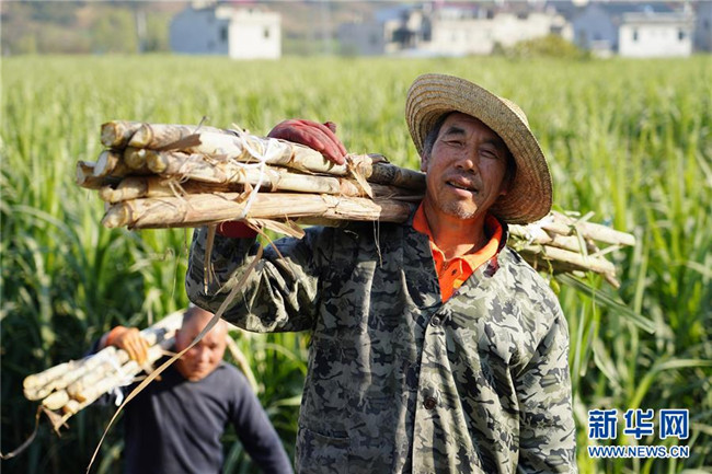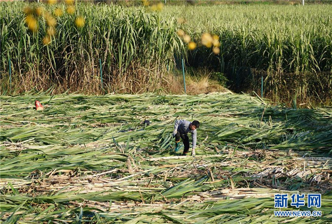 12月3日,漢濱區(qū)五里鎮(zhèn)張營(yíng)村村民在甘蔗地里采收甘蔗。新華社記者 邵瑞 攝