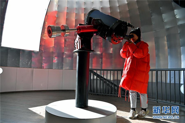 12月14日,參觀者在藏域星球天文科普體驗(yàn)館體驗(yàn)天文望遠(yuǎn)鏡觀測。當(dāng)日,藏域星球天文科普體驗(yàn)館在西藏拉薩開館試運(yùn)營,這是西藏第一家天文科普體驗(yàn)館。據(jù)介紹,此館以感知宇宙、認(rèn)知宇宙、探索宇宙為主題,以參觀者的第一感官體驗(yàn)為設(shè)計導(dǎo)向,利用互動投影、懸浮投影、物體跟蹤、人體捕捉、體感互動、VR等高科技手段展示藏地的神秘,揭示宇宙的奧秘。新華社記者李鑫攝