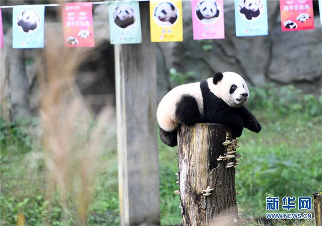 12月22日,重慶動物園1只半歲的大熊貓在戶外活動。當日,重慶動物園為4只大熊貓寶寶“雙雙”“重重”“喜喜”“慶慶”舉行半歲生日慶?;顒?。4只半歲大熊貓在飼養(yǎng)員的照料下,在熊貓館運動場內(nèi)玩耍、嬉戲,與市民游客一同過冬至。新華社記者唐奕攝