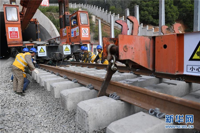 12月22日,中鐵二十四局工作人員在平潭海峽公鐵大橋鋪軌施工現(xiàn)場進(jìn)行鋪軌作業(yè)。新華社記者 林善傳 攝