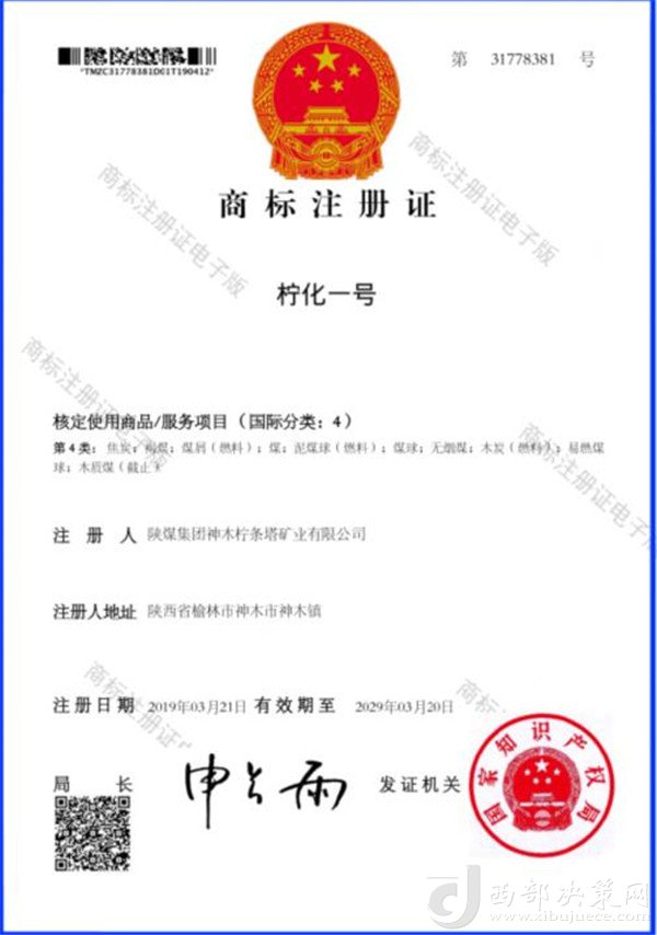 “檸條塔”混煤順利通過了陜西省名牌產(chǎn)品和中國名優(yōu)產(chǎn)品認(rèn)證,“檸化一號”化工煤商標(biāo)成功注冊。目前,檸條塔化工煤享譽(yù)浙江、河北、山東等地,成為了“免檢產(chǎn)品”。