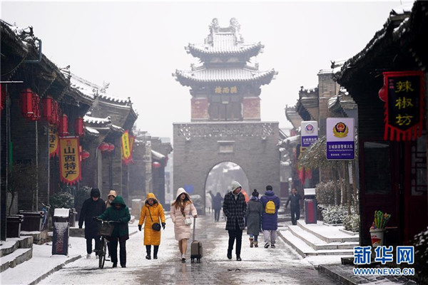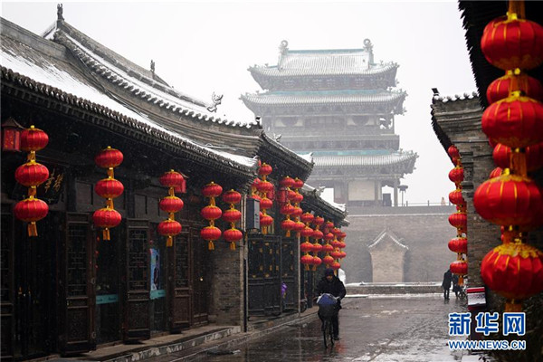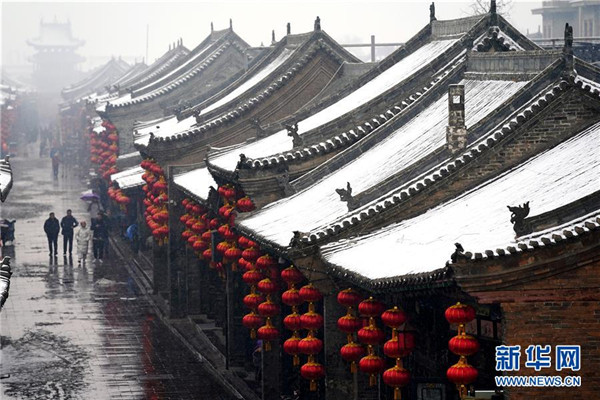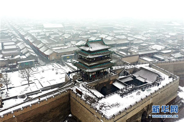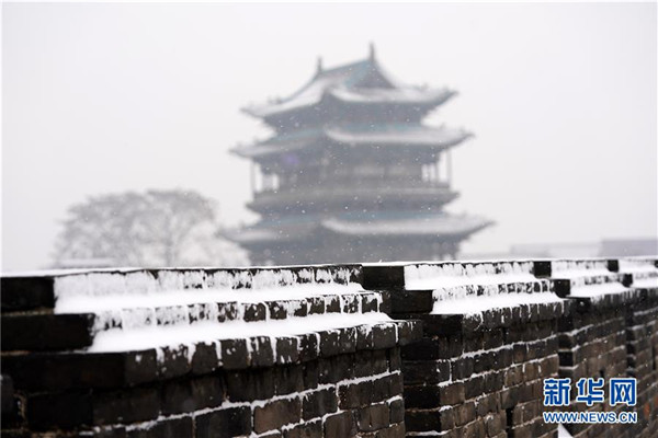 當(dāng)日,山西省平遙縣迎來(lái)降雪,雪中的平遙古城銀裝素裹,美景如畫(huà)。平遙古城是目前中國(guó)保存最完整的古代縣級(jí)城池之一,1997年被列入世界文化遺產(chǎn)名錄。新華社記者詹彥攝