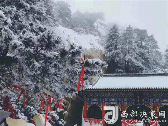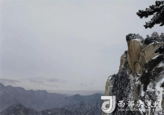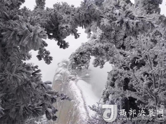 白雪與蒼翠的華山奇松、靈動(dòng)的云海交相輝映,