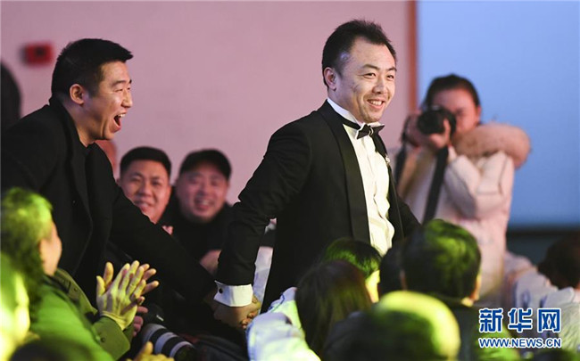1月12日,中央歌劇院文藝小分隊志愿者、男中音歌唱家耿哲在慰問演出上與觀眾互動。新華社記者 王全超 攝