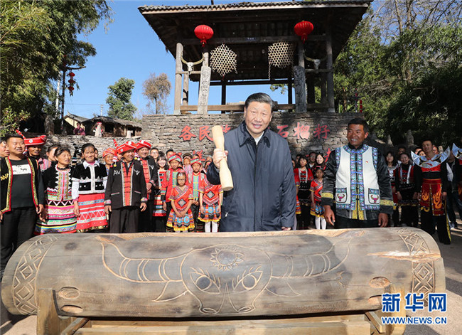 春節(jié)前夕,中共中央總書記、國(guó)家主席、中央軍委主席習(xí)近平赴云南考察,看望慰問(wèn)基層干部群眾。這是1月19日下午,習(xí)近平來(lái)到騰沖市清水鄉(xiāng)三家村中寨司莫拉佤族村看望鄉(xiāng)親們,了解脫貧攻堅(jiān)情況,并向大家送上新春祝福。 新華社記者 鞠鵬 攝