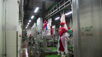 圖為鑫興源公司工作人員正在進行加工肉制品。