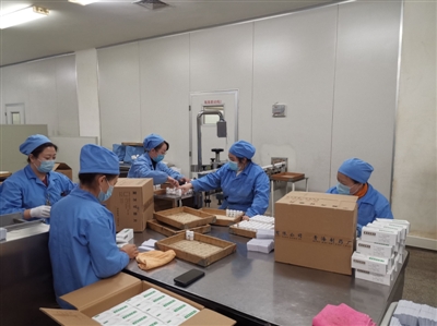 圖為青海制藥廠車間工人正在進行包裝