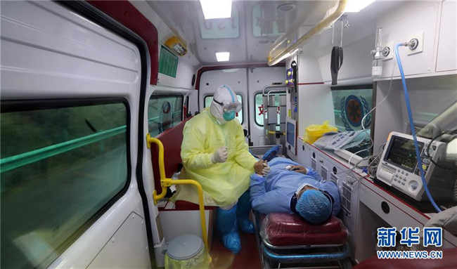 駐守在咸寧中心醫(yī)院的云南醫(yī)療隊(duì)醫(yī)療二組組長(zhǎng)李波趕赴嘉魚縣人民醫(yī)院,轉(zhuǎn)運(yùn)一名新冠肺炎臨床診斷病例(2月21日攝)。新華社發(fā)(楊崢 攝)