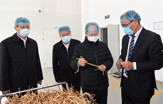 實現(xiàn)穩(wěn)定脫貧,發(fā)展產(chǎn)業(yè)是根本之策。石泰峰深入佰惠生新農(nóng)業(yè)、恒光大藥業(yè)、德青源農(nóng)業(yè)、宏發(fā)牧業(yè)、安琪酵母、恒都農(nóng)業(yè)等企業(yè)和部分專業(yè)合作社,考察特色產(chǎn)業(yè)發(fā)展、農(nóng)企利益聯(lián)結(jié)及帶貧促貧成效。當(dāng)?shù)匾劳旋堫^企業(yè)和專業(yè)合作社帶動,因地制宜發(fā)展種養(yǎng)加工業(yè),探索走出了“甜菜富民”“中藥富民”“金雞富民”等帶貧減貧特色路。七合堂村通過懂技術(shù)、善經(jīng)營的帶頭人引領(lǐng)發(fā)展野果產(chǎn)業(yè),促進(jìn)了群眾脫貧。石泰峰說,企業(yè)發(fā)展好了,扶貧效益才會更好,同時也能為鄉(xiāng)村振興提供有力支撐。種養(yǎng)殖業(yè)發(fā)展起來了,還可以“接二連三”,搞加工、搞旅游。他勉勵企業(yè)要提升規(guī)?;?jīng)營水平,不斷延伸產(chǎn)業(yè)鏈條,提高產(chǎn)品附加值,打造品牌,拓展市場,構(gòu)建穩(wěn)固利益聯(lián)結(jié)機(jī)制,讓發(fā)展成果更好惠及廣大群眾。