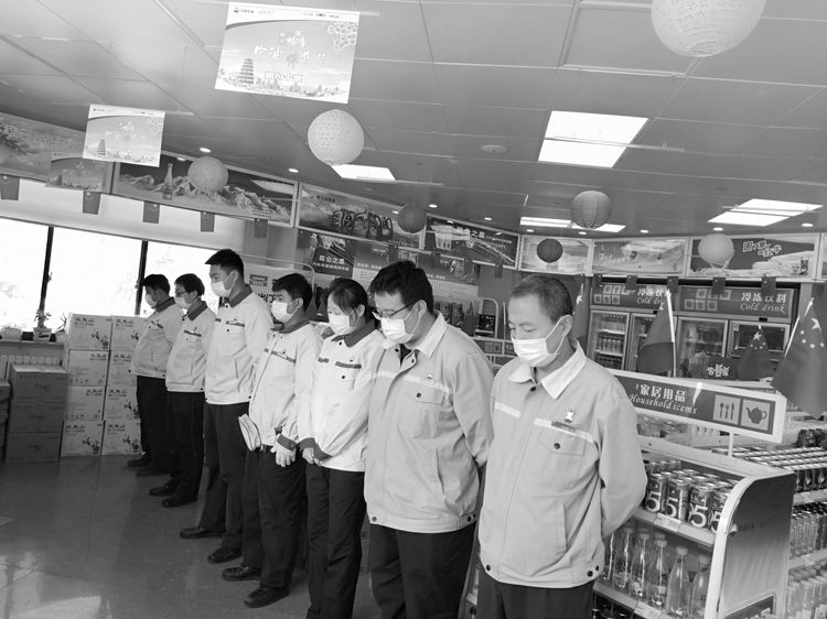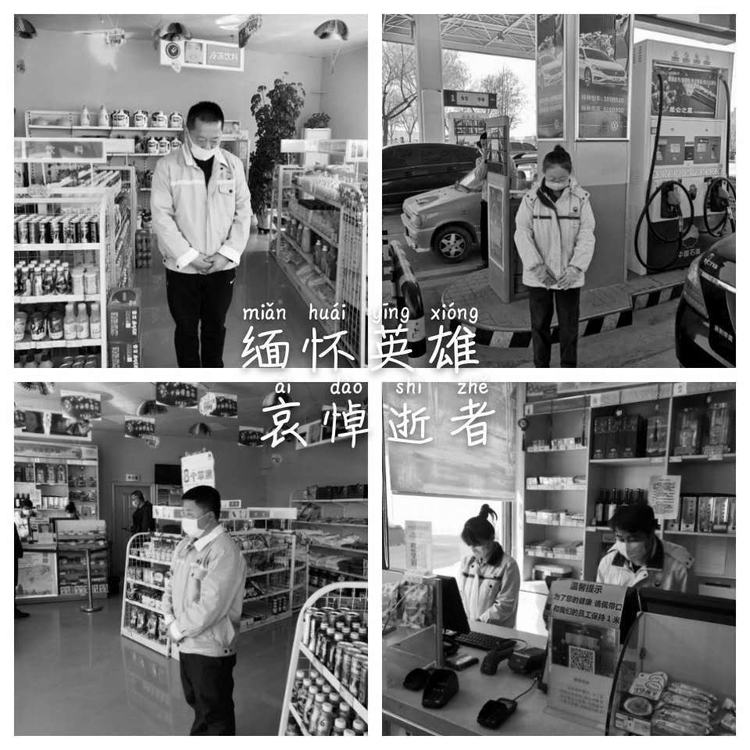 4月4日10時,分公司機關(guān)、各區(qū)域和加油站有懸掛國旗的全部下半旗志哀,員工默哀3分鐘,在確保安全和正常經(jīng)營秩序的前提下,部分加油站組織進站車輛鳴笛志哀。