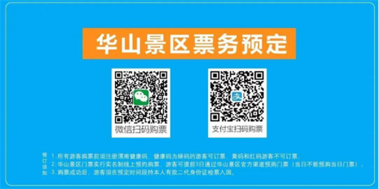 ?。?)游客須通過華山景區(qū)官方網(wǎng)站提前預(yù)購(gòu)門票,確認(rèn)成功后前往景區(qū)游覽;
