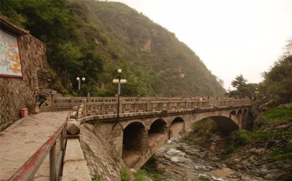 原潭側(cè)巖石上建有廟宇叫五龍宮,宮內(nèi)供有五位龍君,文化革命前殘?jiān)€在,“文革”后徹底毀廢。由于山洪原因,潭逐漸被碎石填塞,今已不復(fù)存在。唯潭上的五龍橋及橋頭上的大型五龍彩色壁畫依然向游人訴說著五龍?zhí)睹利惖膫髡f。橋欄鐫刻的“五龍橋”三字是當(dāng)時(shí)任中共中央書記處書記的胡喬木同志所書。