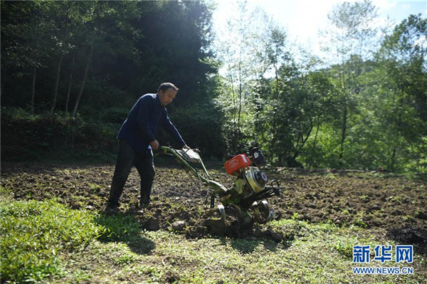 施六金在田間翻耕(4月24日攝)。1973年出生于十八洞村的施六金,由于父親患病很早就放棄學(xué)業(yè)和母親扛起了家庭的重擔。為了生活,他還曾遠去東南亞打工。2015年,看到家鄉(xiāng)的變化,施六金回到村里開起了農(nóng)家樂,年度家庭人均純收入也從2014年的1715元增長到了2019年的35696元。2018年,施六金與心愛的人組建了家庭。今年初,施六金與愛人迎來了一個大胖小子。“做人做事要懂得回報和感恩。”施六金給剛出生的兒子取名施澤恩。新華社記者薛宇舸攝