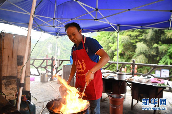施六金在自家開的農(nóng)家樂為客人準備午餐(4月25日攝)。1973年出生于十八洞村的施六金,由于父親患病很早就放棄學(xué)業(yè)和母親扛起了家庭的重擔。為了生活,他還曾遠去東南亞打工。2015年,看到家鄉(xiāng)的變化,施六金回到村里開起了農(nóng)家樂,年度家庭人均純收入也從2014年的1715元增長到了2019年的35696元。2018年,施六金與心愛的人組建了家庭。今年初,施六金與愛人迎來了一個大胖小子。“做人做事要懂得回報和感恩。”施六金給剛出生的兒子取名施澤恩。新華社記者薛宇舸攝