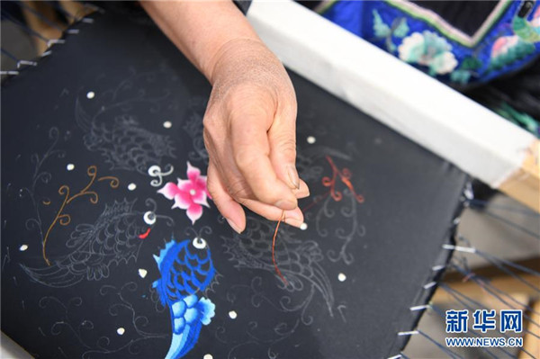 吳美金在十八洞村苗繡特產(chǎn)農(nóng)民專業(yè)合作社繡苗繡(4月24日攝)。1967年出生的吳美金,1992年嫁入飛蟲村(現(xiàn)十八洞村飛蟲寨)時,只有爛泥路的飛蟲村不僅田土少,掙錢活路也少,生活十分困難。2014年,吳美金加入了十八洞村苗繡特產(chǎn)農(nóng)民專業(yè)合作社,從小就會的苗繡傳統(tǒng)手藝如今成了家庭增收的法寶,不僅在家門口就把錢掙了,同時還能照顧年幼的孫子孫女。“現(xiàn)在的日子,比年輕的時候好多了。”吳美金說。新華社記者薛宇舸攝