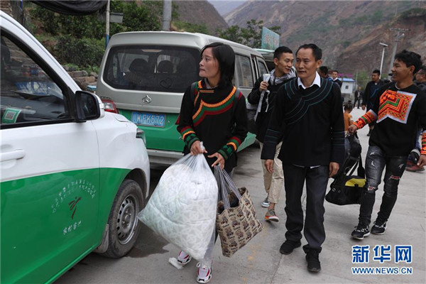 5月12日,四川省昭覺(jué)縣阿土列爾村第一批26戶貧困戶陸續(xù)下山準(zhǔn)備搬新家。新華社記者江宏景攝