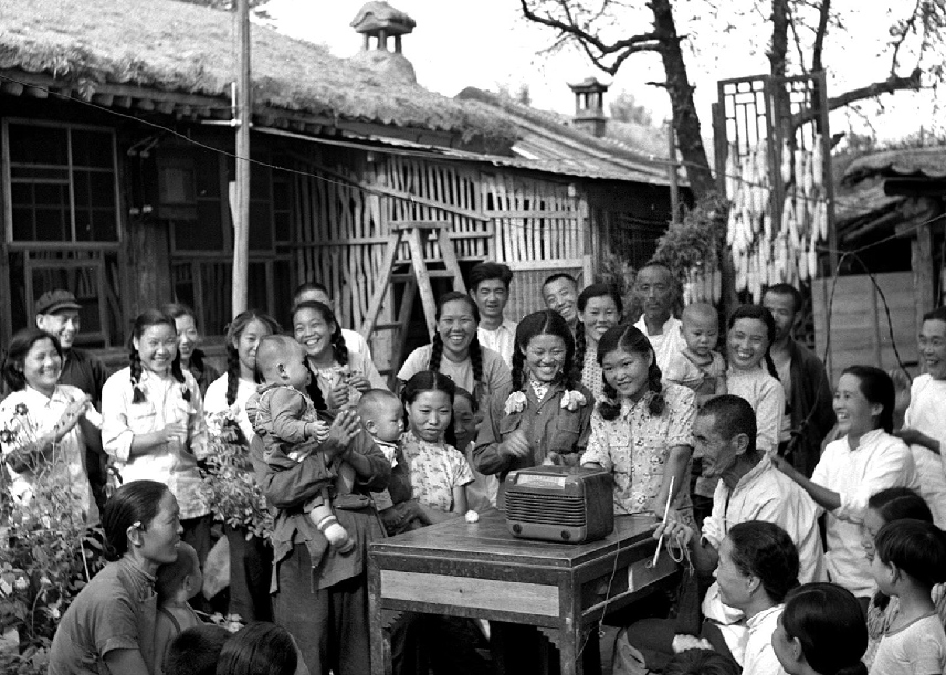 1954年9月15日至28日,第一屆全國人民代表大會第一次會議在北京召開。圖為北京郊區(qū)農(nóng)民收聽會議實況轉(zhuǎn)播的情形。