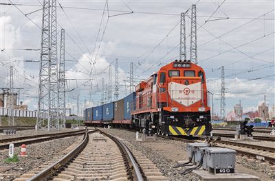 一列滿載貨物的中歐班列緩緩駛出滿洲里站。 記者 懷特烏勒斯 攝