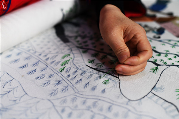 35歲的貧困戶張小容,因?yàn)檎煞蛞馔馐軅荒軇趧?,一個人扛起了家庭的重?fù)?dān)。經(jīng)過培訓(xùn),現(xiàn)在她在苗繡工藝品公司上班,下班回家后還要加班繡香囊,每月有近3000元的收入。70多歲的婆婆有一次專門來公司看她,回家后再也不讓兒媳婦洗碗,怕傷到兒媳婦做苗繡的雙手。張小容說,能在照顧家人的同時增加收入,給了她堅(jiān)持的希望。