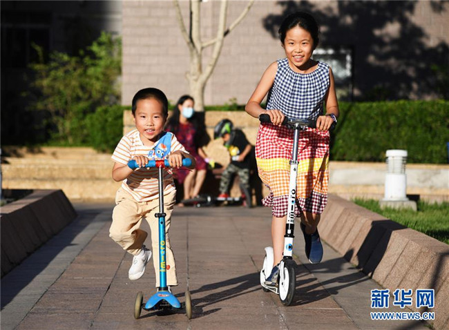 5月31日,在北京市海淀區(qū)中關(guān)村街道新科祥園社區(qū)廣場(chǎng),小朋友在玩耍。 新華社記者 任超 攝