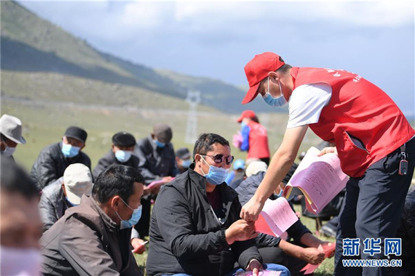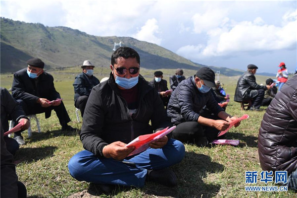 6月20日,在布爾津縣阿貢蓋提草原,牧民在看布爾津縣也格孜托別鄉(xiāng)克孜勒托蓋村家庭醫(yī)生簽約團(tuán)隊發(fā)放的宣傳材料。圍繞實現(xiàn)人人享有基本醫(yī)療衛(wèi)生服務(wù)目標(biāo),2016年起,新疆布爾津縣開展家庭醫(yī)生簽約服務(wù)工作。該縣組建家庭醫(yī)生簽約團(tuán)隊65個,團(tuán)隊醫(yī)務(wù)人員233名,通過手機APP、基本公衛(wèi)系統(tǒng)與全縣建檔立卡貧困戶進(jìn)行電子化簽約,提升村醫(yī)隨訪的工作效率和質(zhì)量。截至目前,已完成簽約42936人,履約40043人。新華社記者沙達(dá)提攝